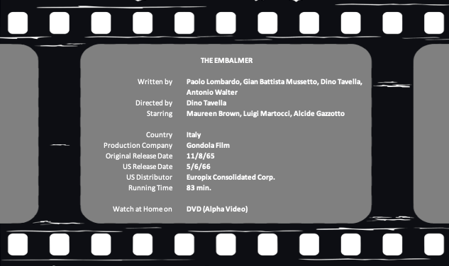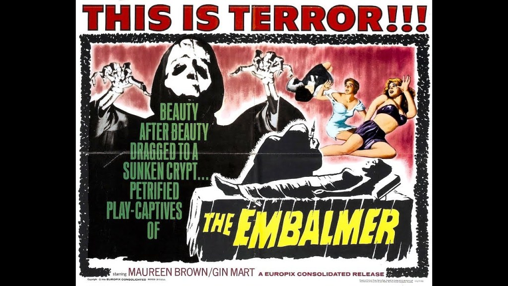 The physical characteristics of a 1960s low-budget American horror movie are distinct, but similar characteristics of a 1960s low budget Euro-horror film are usually masked by unique style and exotic locations; they somehow just don’t feel as cheap. There are exceptions to every rule, though, and The Embalmer (1965) is one in this instance.