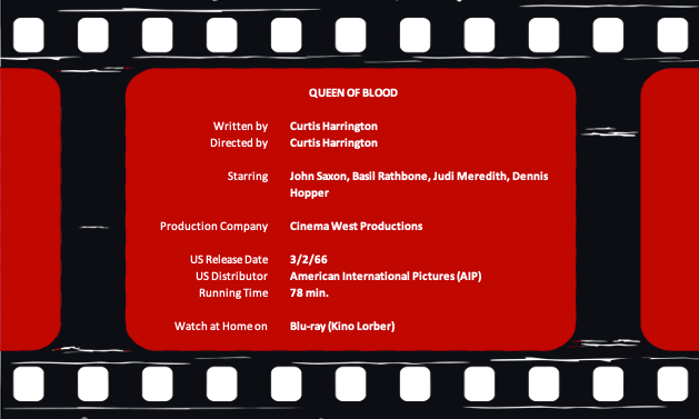 The final third of Queen of Blood (1966) is a great little film; however, the first two-thirds is a hot mess. You can easily find trivia about the making of the movie and it’s interesting to read. What I conclude from it is that it’s pretty amazing Queen of Blood is as good as it is. It’s not so good, though, that I agree with writer/director Curtis Harrington that it inspired Ridley Scott to make Alien (1979.)