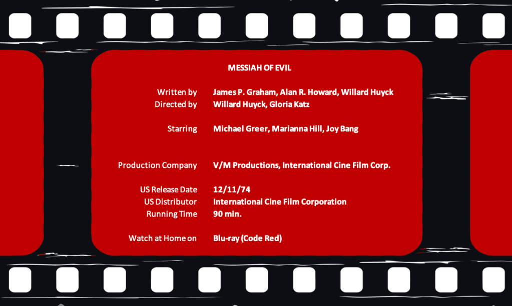 The years have been kind to Messiah of Evil, and while it remains somewhat of a cult film, it regularly appears on “best of” lists. For example, it was #95 on IndieWire’s 2018 list of The Greatest Horror Movies of All-Time.