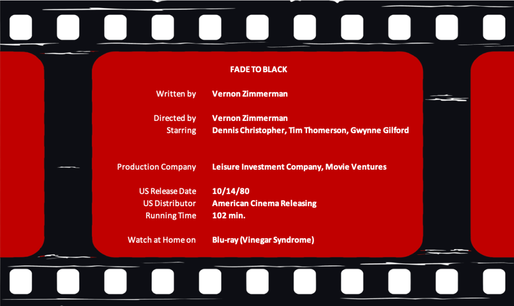I don’t remember when I finally saw Fade to Black (1980.) I know I didn’t see it in theaters, so it was probably when it aired on HBO. If it was late enough, I may have been further encouraged by a blurb in Famous Monsters of Filmland that came in March of 1981: