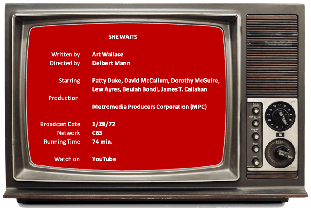 The headline here is that She Waits (1972) was written by Art Wallace, the man who created the bible for Dark Shadows and wrote its first 40 episodes, plus many more after that, including those introducing the reluctant vampire, Barnabas Collins. Here, he focuses strictly on ghosts. The story isn’t quite as soapy as Dark Shadows, but it does have secrets, a surprise at the end, and a melodramatic conclusion.