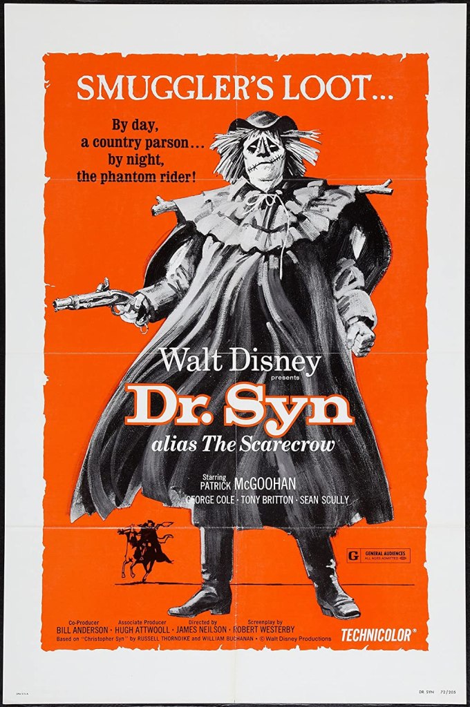 It was more likely a third version, edited again, but also called Dr. Syn, Alias the Scarecrow, that was shown in theaters during the 1970s on a double bill with either Snow White & the Seven Dwarfs or Treasure Island. IMDb shows a theatrical release of November 21, 1975. Although I don’t remember the second feature, this must have been the version I originally saw. The specifics are hard to remember; the terrifying visage of “the Scarecrow” and the sound of his equally terrifying laugh are not.