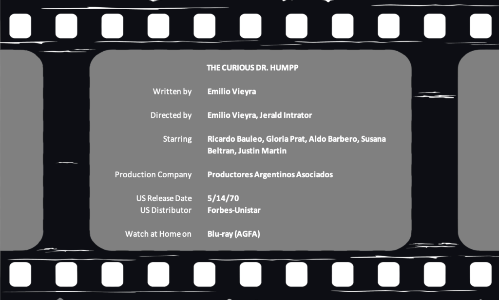 You know what curiosity did to the cat. For this horror film fan willing to explore unusual territory, though, The Curious Dr. Humpp (1969) did not kill me. I can’t say I completely enjoyed it; it’s a little slow and not terribly well-made. However, the idea is compelling even when the execution is not.