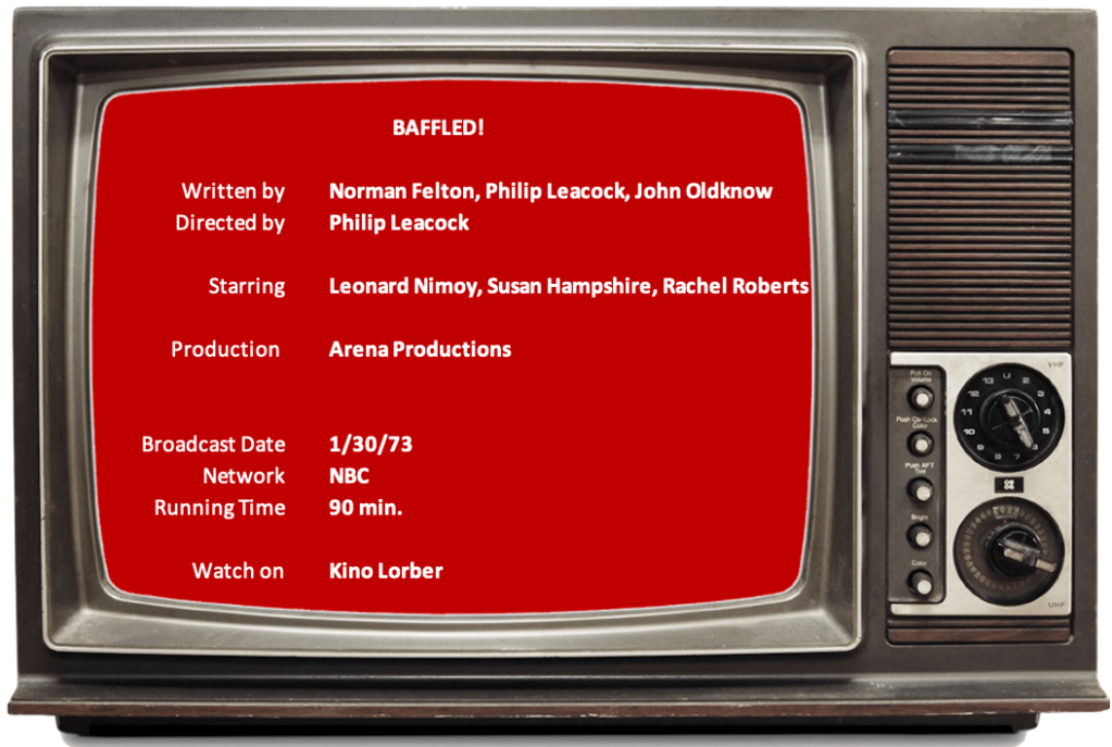 Baffled! (1972) has all the characteristics of the television pilot that it is. Considering the formula has been utilized many times in other shows, it’s curious that it was a failed pilot. For reasons I’ll attempt to pinpoint, I found it unusual. However, I also found it entertaining.