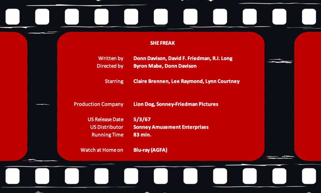 She Freak is not a horrible movie. However, its biggest flaws lie in the technical delivery of the story. Because it breaks so many rules of filmmaking, it’s got to be rated lower than average. For example, the story is uneven. Its first two-thirds is slow and doesn’t drop enough hints about the drama that’s going to unfold in the final one-third.