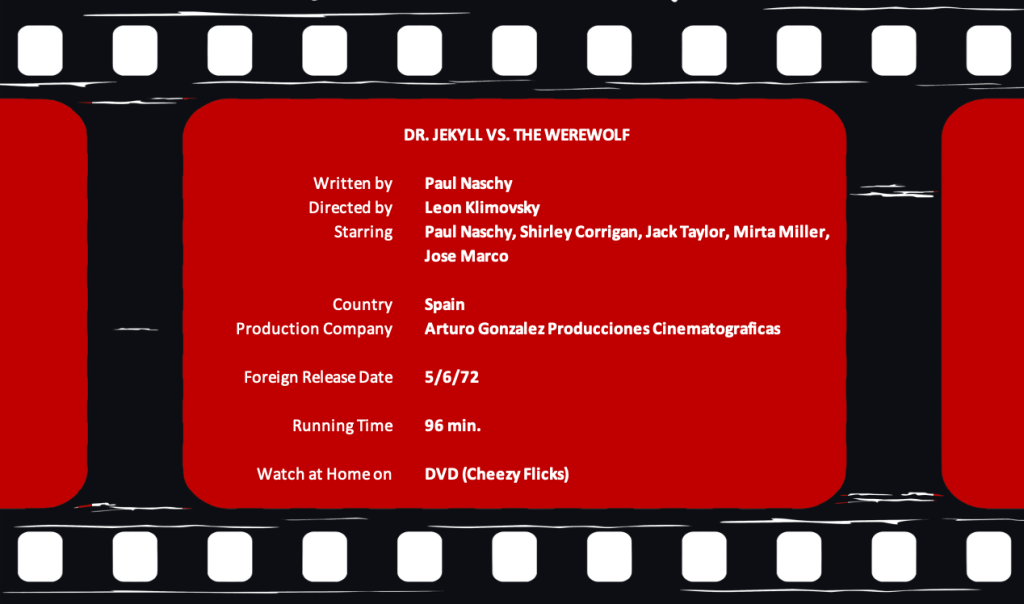 The unexpected joy of Dr. Jekyll vs. the Werewolf is experiencing Paul Naschy as Mr. Hyde. He is one nasty creature, making me long to have seen him in a full-length adaptation of the classic tale. The makeup is simple, yet terrifying, and Naschy lets loose in a way that’s different from how he does it as the werewolf.