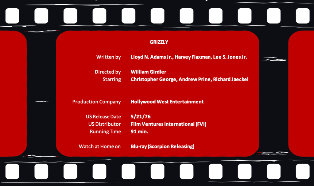 Grizzly isn’t bad; it has its charms. I was surprised to learn during my research that until Halloween broke all records two years later, Grizzly was the highest grossing independent film of all time. I wonder why there wasn’t a sequel. Well, there was. That’s a story for another day. How about tomorrow? Come back then for Grizzly II: Revenge…