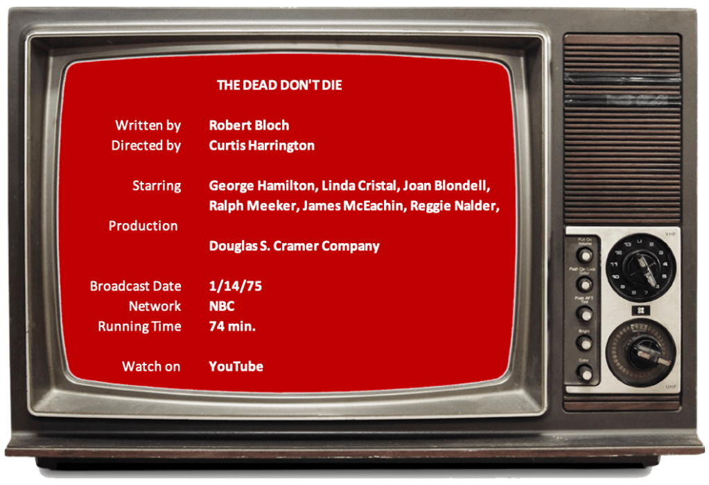 Visit the TV Terror Guide: 70’s TV Movies playlist at ClassicHorrors.Club TV on YouTube to watch The Dead Don’t Die as well as all the great movies from this series…