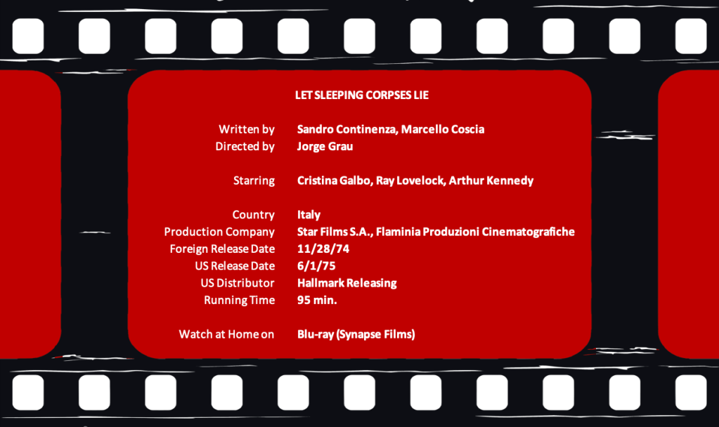 For all intents and purposes, this was the first time I watched The Living Dead at Manchester Morgue (1977), the name of the movie on the Synapse Films Blu-ray. (It’s been known by many others, including Let Sleeping Corpses Lie, which is what IMDb calls it.) I have history showing that I awarded it six stars at one time, but I have no memory of seeing it. As my taste for Eurohorror has developed over the years, I now think it’s better than that.