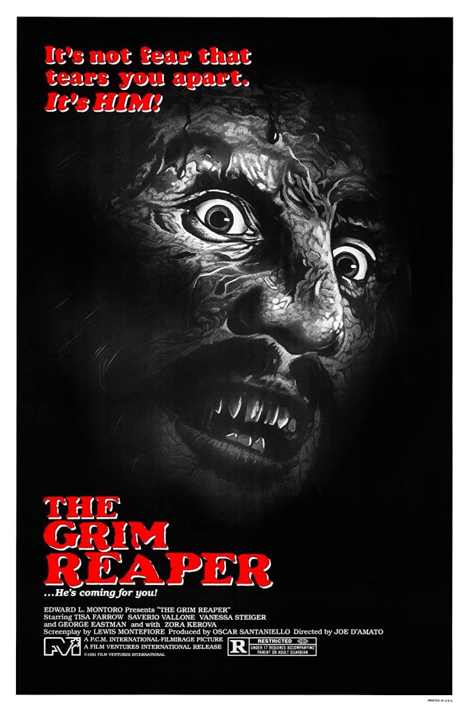 I provide this history to say that calling attention to a gory Italian horror film on its cover was unusual for Famous Monsters. Whatever its intentions, this image stuck with me for years, especially since this was a movie that I was never able to locate. Then, when, in the last couple of years, Severin Films announced a Blu-ray release of a movie called, Anthropophagus, and I learned that was another name for The Grim Reaper, I ordered it as a blind buy.
