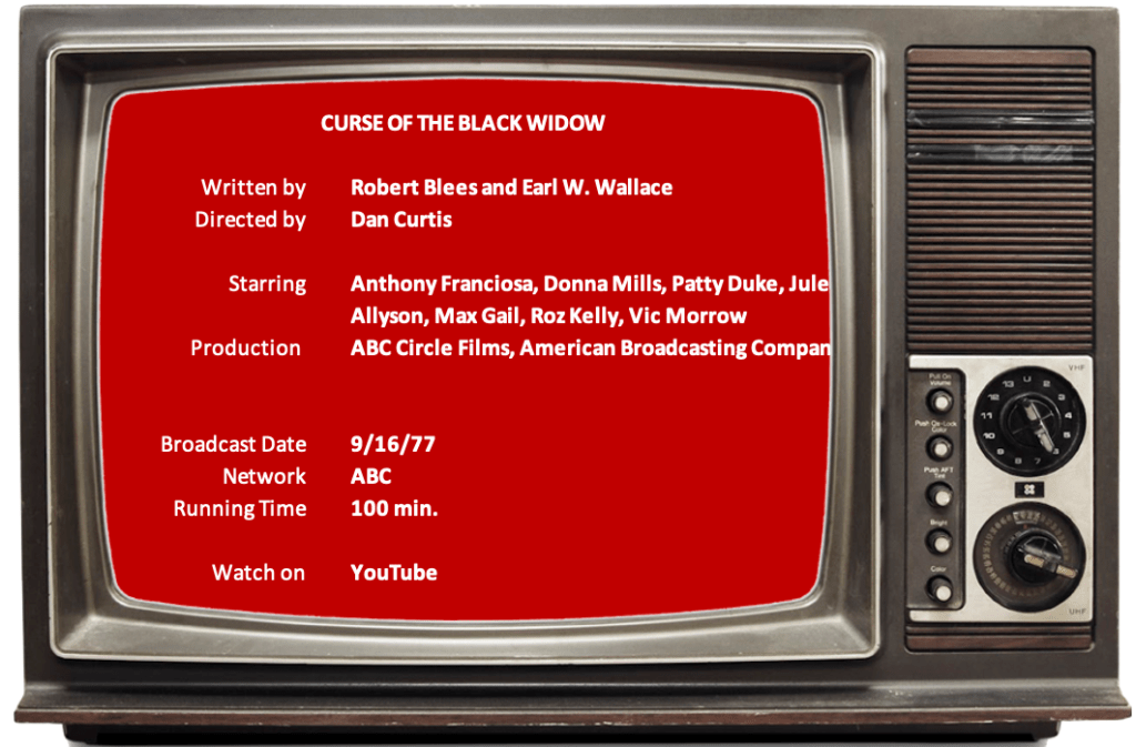 Visit the TV Terror Guide: 70’s TV Movies playlist at ClassicHorrors.Club TV on YouTube to watch Curse of the Black Widow as well as all the great movies from this series.
