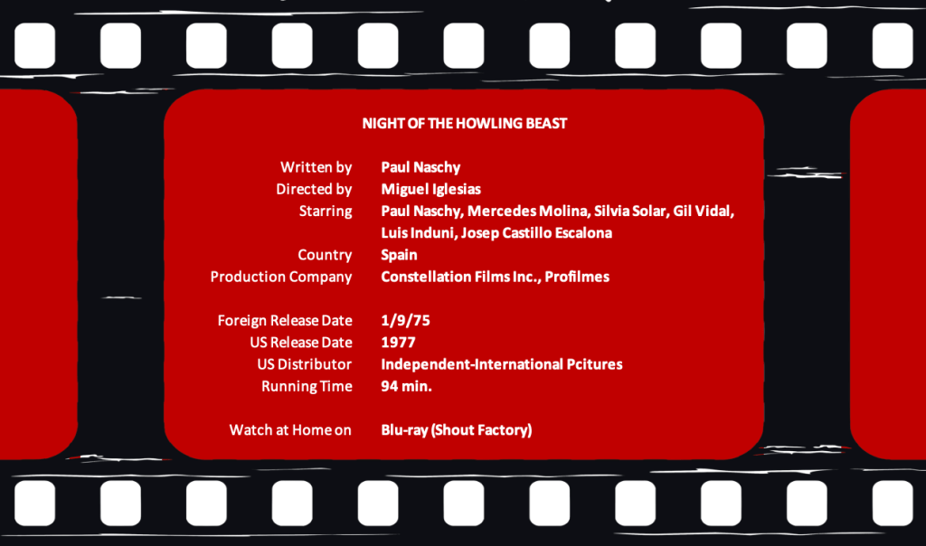 It’s appropriate that we conclude Naschy November with a Waldemar Daninsky werewolf film, considering we started it with one 30 days ago. If we hadn’t seen so many movies in between, we might have thought Paul Naschy didn’t make much creative progress between Frankenstein’s Bloody Terror in 1968 and this one, Night of the Howling Beast, in 1975.