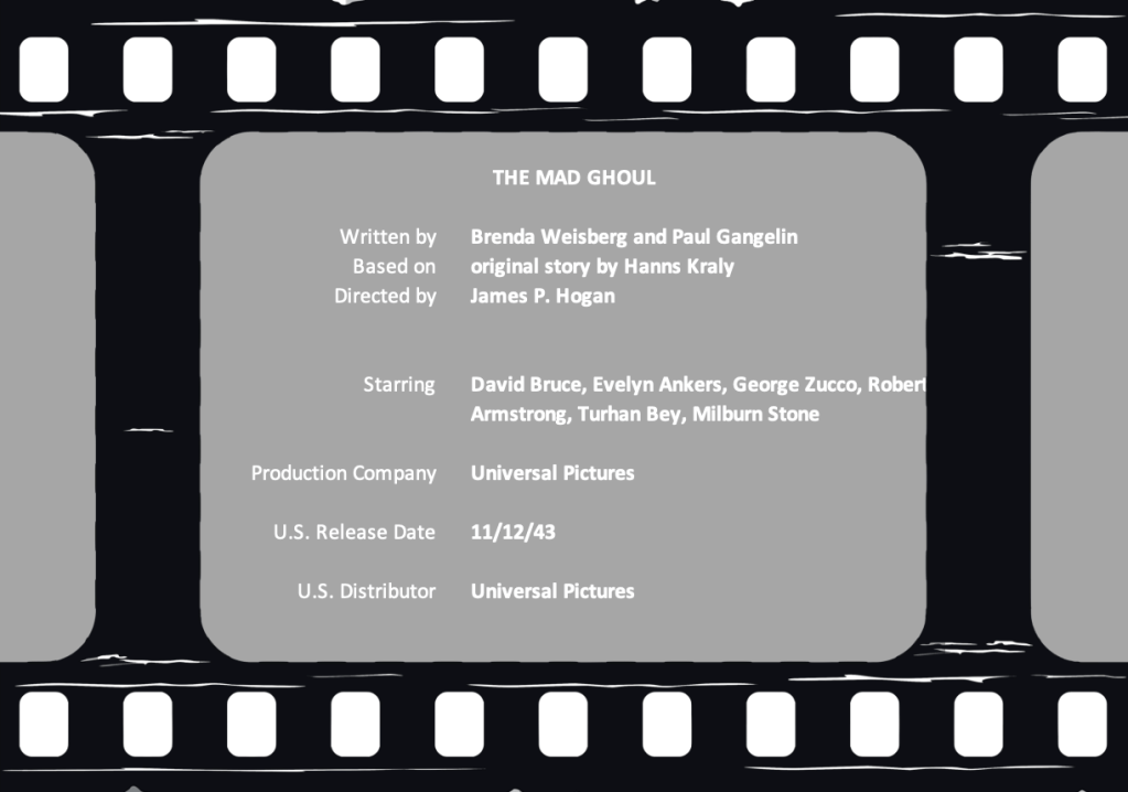 Maybe it’s because I just watched a ratty old print of The Mad Monster (1942) on YouTube and a crisp new transfer of The Mad Ghoul (1943) on Blu-ray, but I enjoyed the latter… a lot. One of the “lesser” films among the Universal Horror Collections, I liked it better than some of the sequels to the “big ones.”