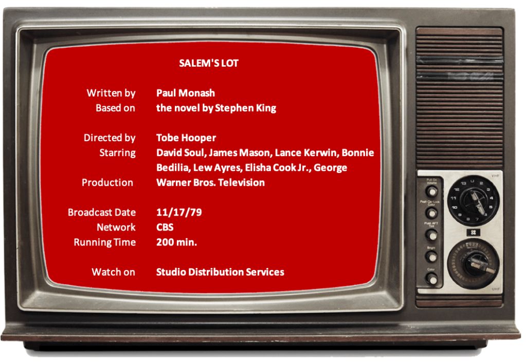 Speaking of that scene, it raises one of several questions I had for the first time when watching Salem’s Lot for the umpteenth time. On one hand, it’s a spoiler. We know that the two characters are apparently going to survive… something. Even though there’s a suggestion that there’s still more to come, it seems to remove some of the suspense of the story. Then again, there’s no return to Guatemala at the end of part one, so maybe it will be forgotten by the time part two begins.