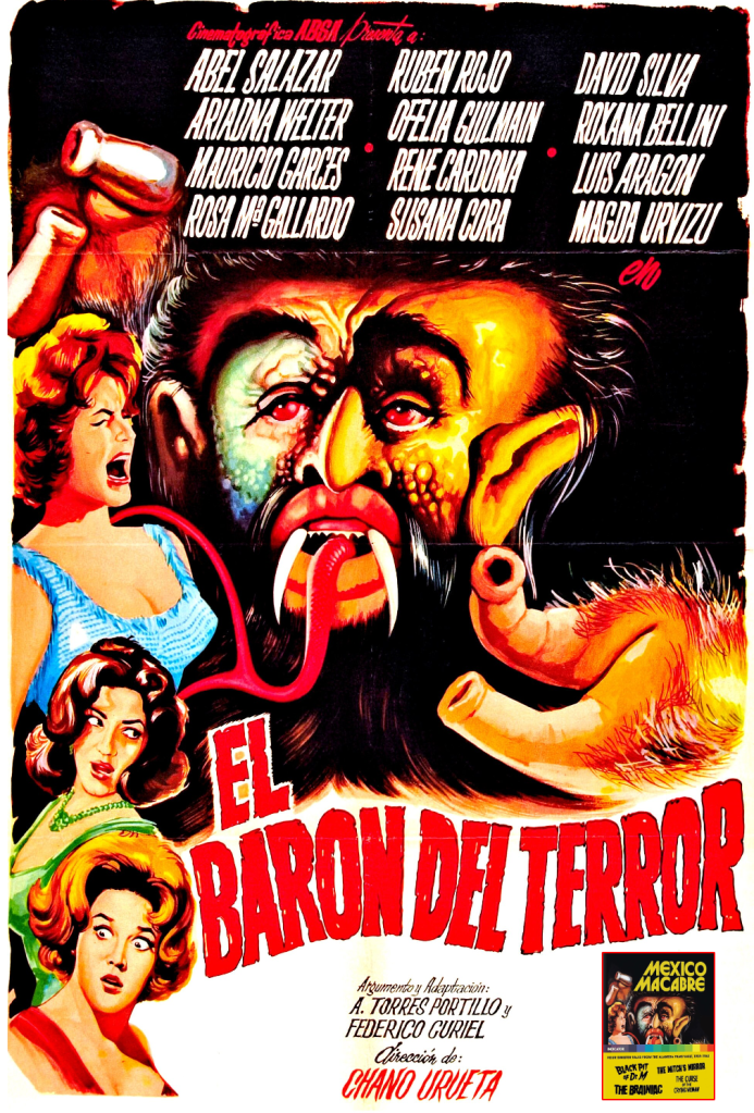 …it is with this grotesque monster that Mexican cinema finds it greatest, one-hundred percent native horror icon, without any recognizable antecedent in any foreign myth or folklore. He is not a vampire or a lycanthrope. Not a witch, mummy, ghost, or alien, much less an infected or resurrected zombie. He is, plain and simple, Baron Vitellius d’Estera.