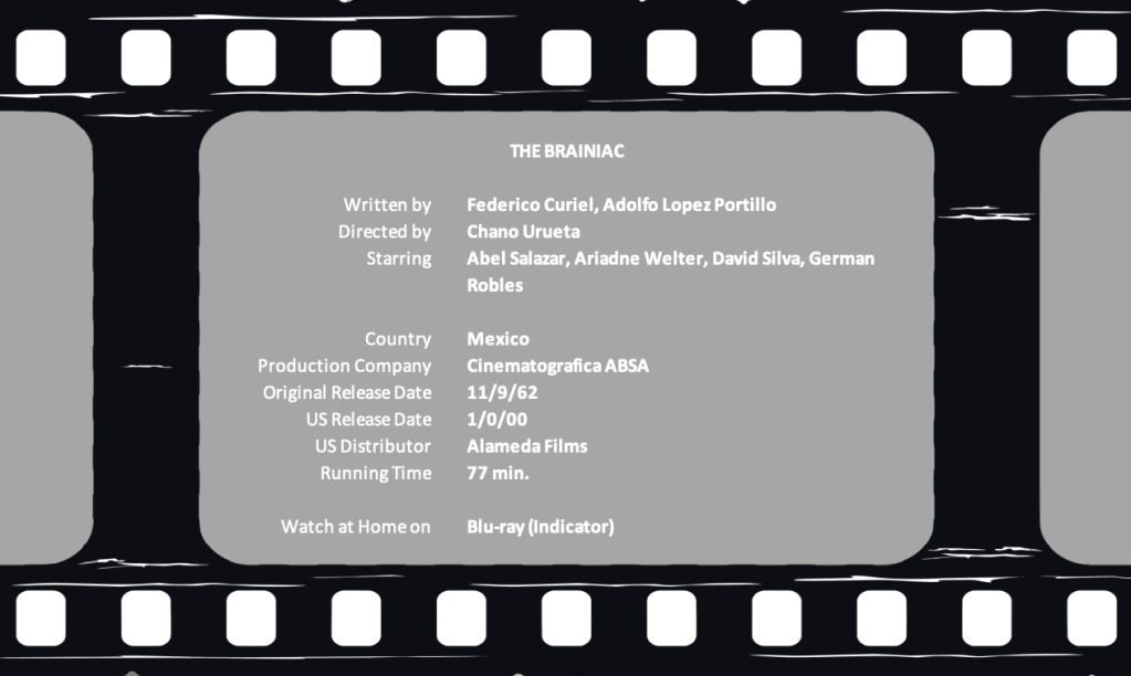 In the wonderful and fact-filled book that comes with Indicator’s Mexico Macabre box set, Jose Luis Ortega Torres says about The Brainiac: