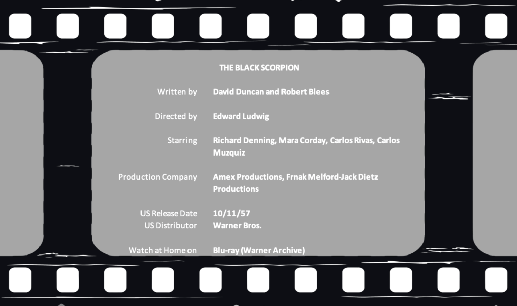 From what I knew of its reputation, I assumed The Black Scorpion (1957) was going to be a better than average “big bug” film. (Technically not insects, scorpions are cousins of spiders in the arachnid class, but I don’t think anyone wouldn’t call a giant spider movie a “big bug” movie.) I didn’t, however, imagine that it would exceed my expectations the way it did.