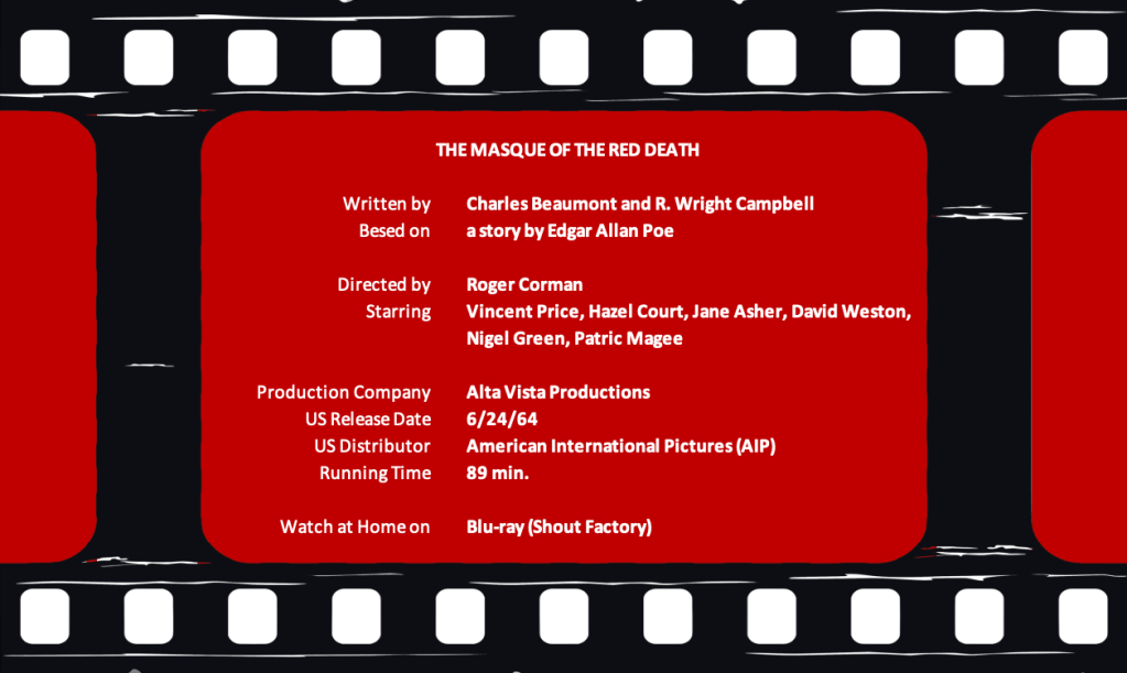 The seventh film out of Roger Corman’s eight-film cycle based on the works of Edgar Allan Poe, The Masque of the Red Death (1964) is perhaps the best, but not necessarily the most entertaining. In some ways, it’s Corman’s “art film,” with imagery that evokes The Seventh Seal (1957), a concern that prevented him from making it sooner than he did. Filming in England allowed the production more time and money, however…