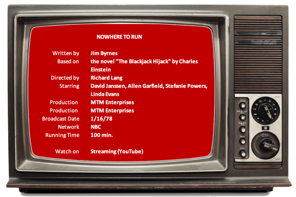 As we resume with Nowhere to Run (1978) after putting this series about 1970s TV movies on pause, it’s a good time to remind you that not all these movies will be horror films. Most will be thrillers, but some will slip in like this one, that aren’t really either, regardless of how exciting they sound when you read about them.