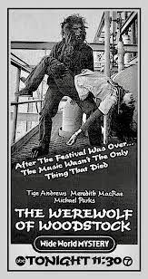 I open with this reflection on a possible past because 49 years later, The Werewolf of Woodstock is nothing if not one big throwback to the past. It takes place a few days after the music festival that drew more than 460,000 attendees to a dairy farm in Bethel, New York between August 15-18, 1969, and opens with a television reporter standing amid a “sea of debris.”