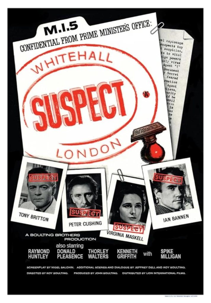 The movie Suspect (1960) was as much an experiment as the ones its characters perform. Producer/directors John and Roy Boulting wanted to “raise the level” of the supporting feature, or B-movie, shown at the bottom of a double bill. With the budget of a supporting feature, they completed the film in 17 days, hoping to prove that “the acting, writing, photography and direction need not be of the quality usually associated with such films.”