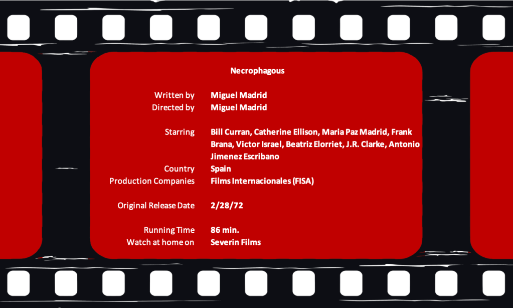 At one point during Necrophagous (1971), I considered shipping the blu-ray back to Severin Films with a note that the chapters were out of order. For nearly the first hour, I was completely confused about who the characters were and what the heck was happening. Shifting blame from Severin to the film’s editor, Maria Luisa Soriano, I envisioned attempting to piece together a coherent plot after rolls of film spilled onto the floor.