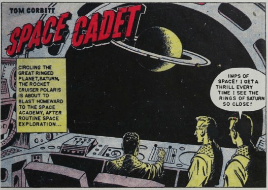 The comic book character first appeared in three issues of Dell’s 4-Color: #378, #400, and #421. It then moved to its own title for eight more issues, starting with Tom Corbett, Space Cadet #4. Several issues are available on archive.org and you can get more information about each issue at Mike’s Amazing World.