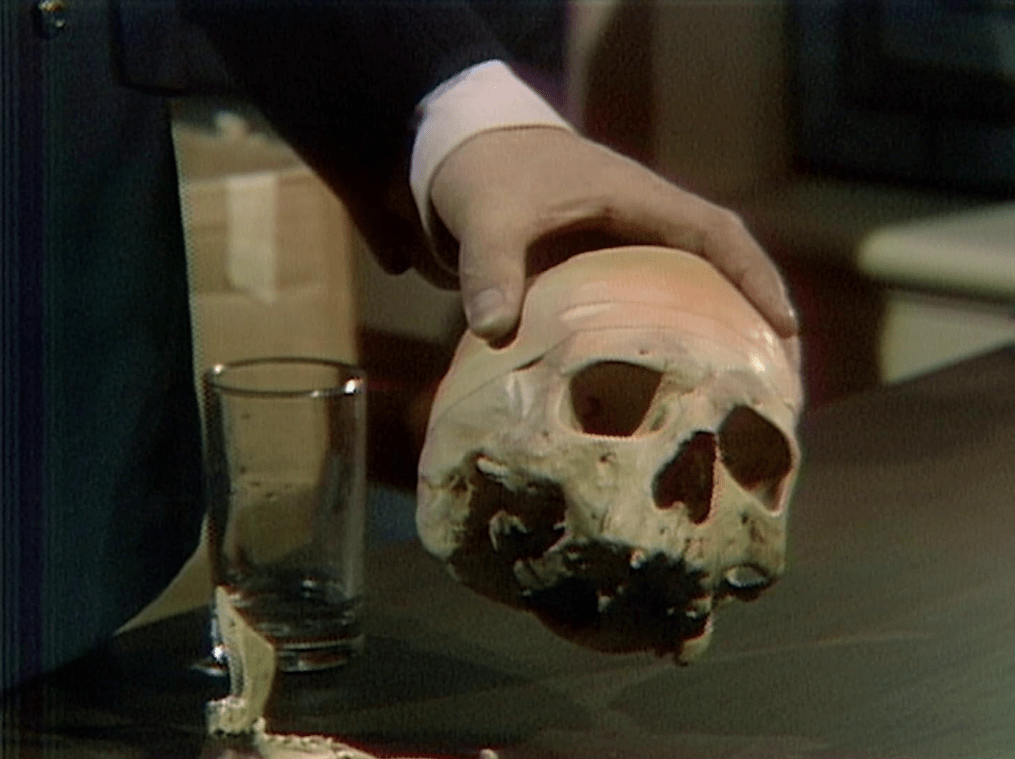 How it manifests is grisly, but since it was broadcast on television in 1973, even though it was late night, we can only imagine seeing its genesis. Luke carries a scalpel into her crypt, pulls out her coffin, opens it, then twists the weapon in the light, causing it to glimmer and shine. But the next thing we know, he’s pulling a clean white skull out of his medical bag.