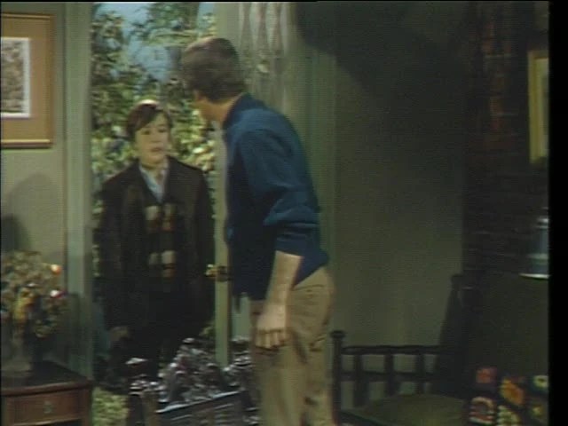 It was David, looking surprised. I told him I was all right… why wouldn’t I be? He seemed slightly dazed and I asked what was the matter with him? He said nothing, but he was taking a hike through the woods and thought he saw someone sneaking out of here. I told him he saw someone, Barnabas and Julie, but I didn’t think they were sneaking. They were just here visiting me.