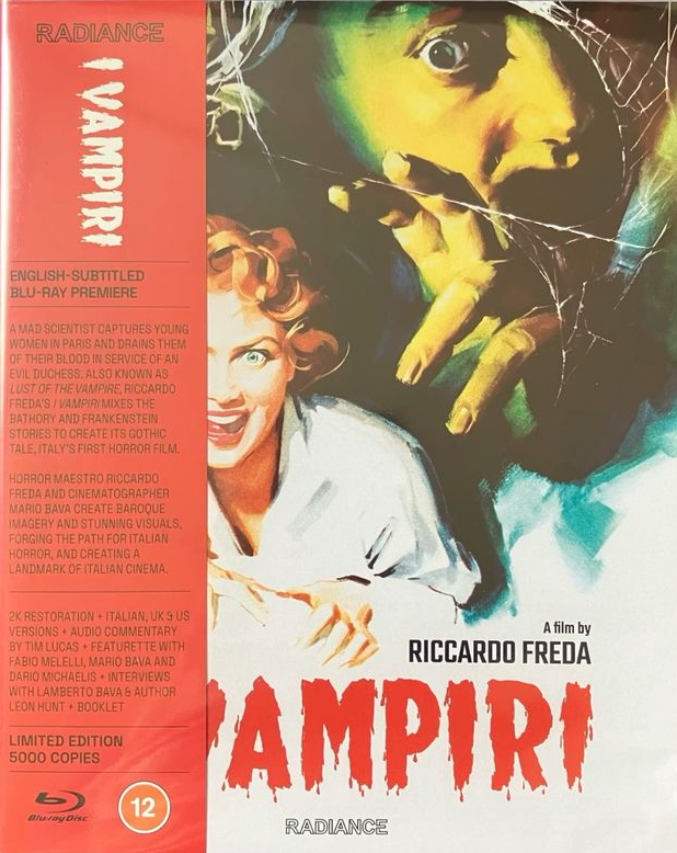 I watched I Vampiri on the Radiance Blu-ray. However, Lust of the Vampire and The Devil’s Commandment are available on YouTube. Compared to the original’s 82 m. running time, the former runs only 72 m. and the latter, only 69 m.
